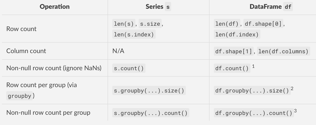 pandas dataframe의 행 또는 열의 수를 카운트하는 방법을 알아보자.