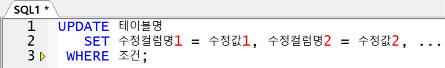 - SET 절의 왼쪽에는 수정할 테이블의 컬럼, 오른쪽에는 참조 테이블의 컬럼 작성